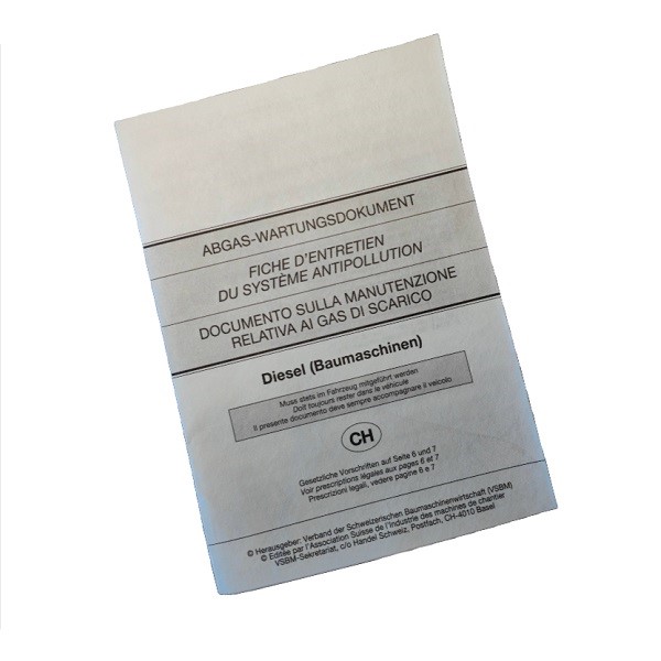 Abgasdokument, Diesel (Baumaschinen), Partikelanzahl-Messung, Nettopreis!